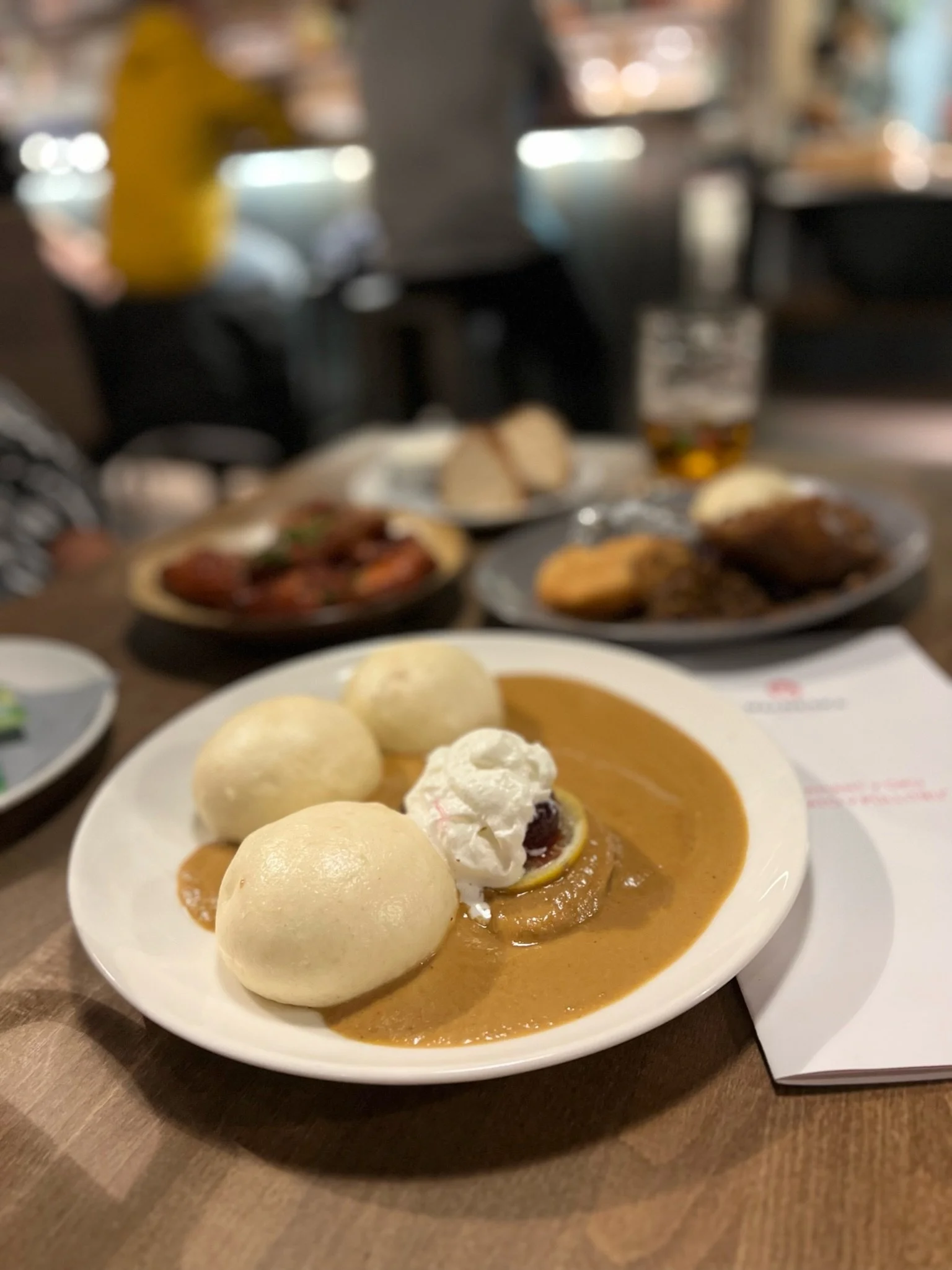 Czech food is hearty, meat-heavy, and absolutely delicious. The national dish is svíčková – slow-cooked beef sirloin in a creamy sauce, served with bread dumplings and cranberries. If you only eat one Czech thing, it should be this! P.S.: You can also try a vegan version at Vegan’s Prague, a great restaurant close to Prague Castle with an amazing view!